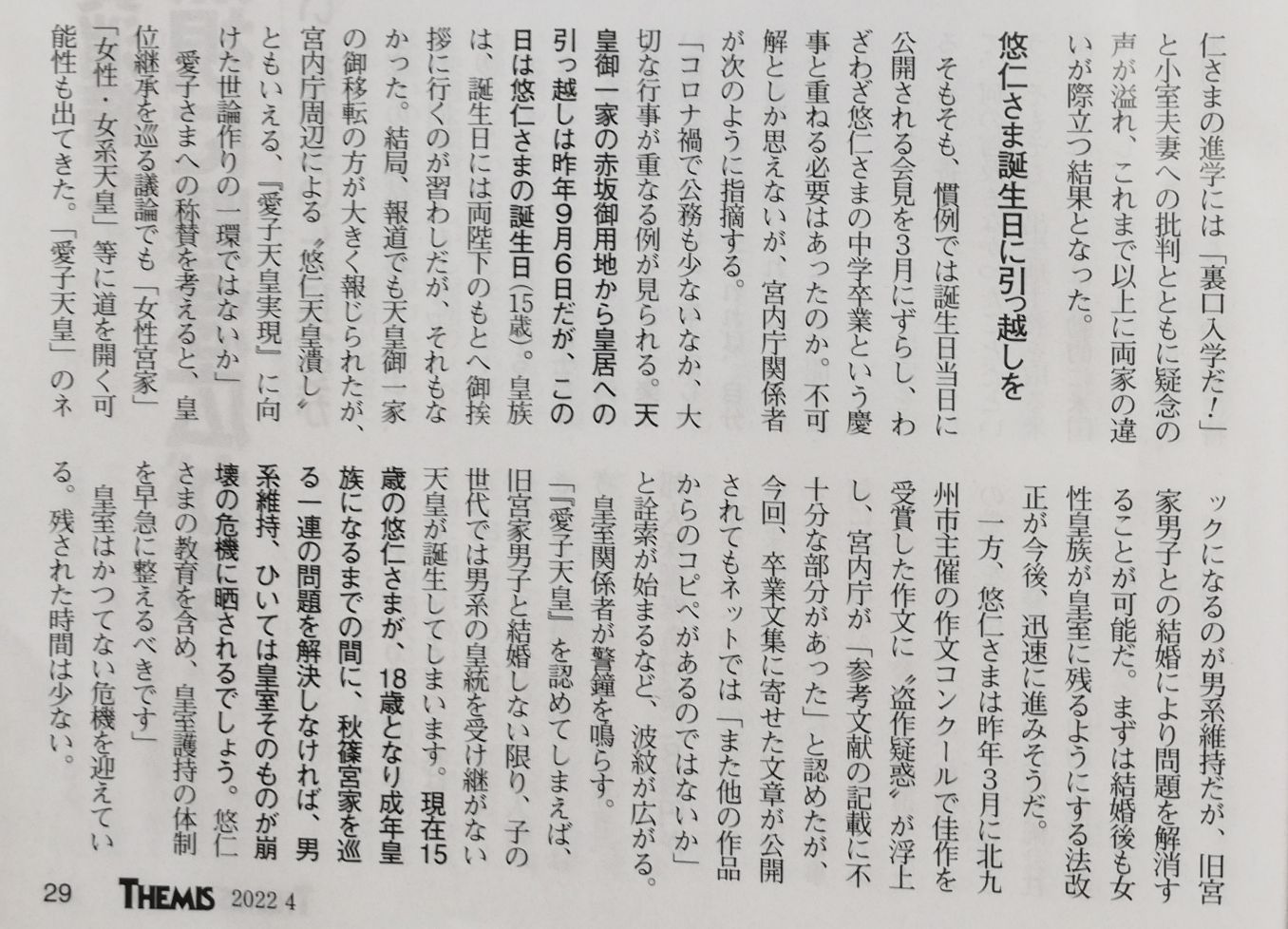 しかし、ここに例としてあげられている、天皇ご一家の皇居へのお引っ越しをズル仁の誕生日とかちあったのは宮内庁の「悠仁潰し」なんて言うのはいただけませんね。