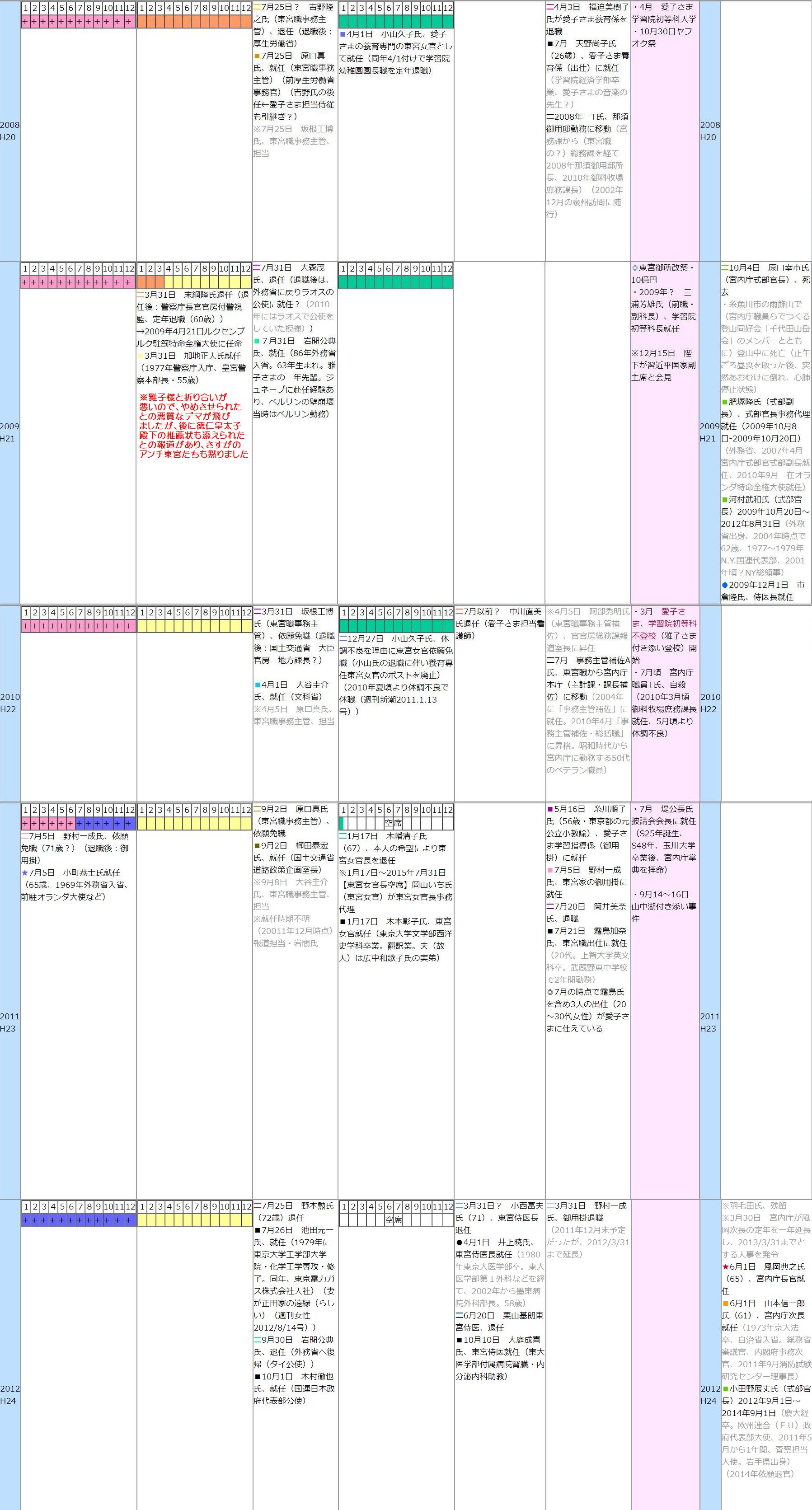 どうも、アンチが作った年表のようなので、あちこちから「雅子憎し」のデムパがビンビン出ていますが、重宝しているので、保存して置いたものですw