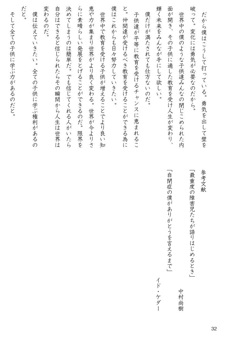おかげで僕は未来を信じることができるようになり、自分の可能性や自分の存在が皆と同じように唯一無二であると、一人一人どんな子供もたった一度の人生を豊かと心から信じることができた。