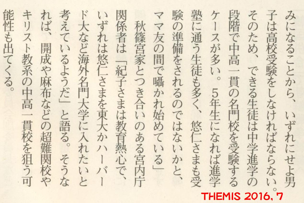 2016年7月号のやはりTHEMISなんですけどね、記者の方は、開成・麻布なんつって、実力で入学試験に挑むと思っていたんですかね。