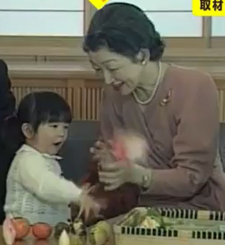台所ブログを始めて、いろんな画像を集め出した頃、正月写真で、またマコどんが敬宮さまを睨み付けているのに気がついて、もうその時は、皇太子家になかなかコウノトリが飛んで来ないので、アキヒトさんが「マコどん女性天皇」を言い出していたということも知っていたので、マコどんにとっては、敬宮さまご誕生が、てっぺんから突き落された出来事だったのか、と思い至った。