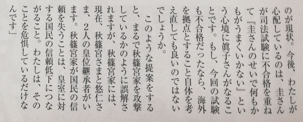 >秋篠宮家には、現在、(中略)2人の皇位継承者がいます。