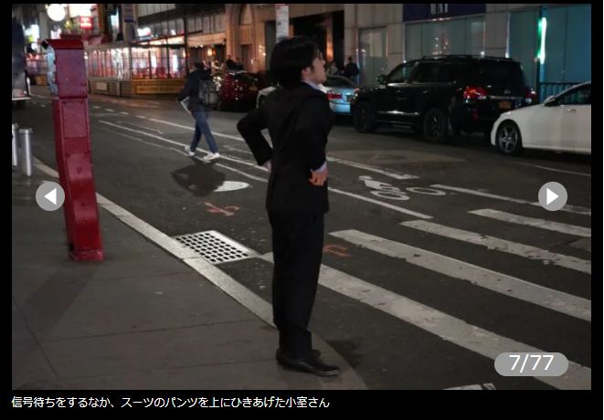 カメラが狙っているのは承知の上、ずり下がったパンツを上げる。