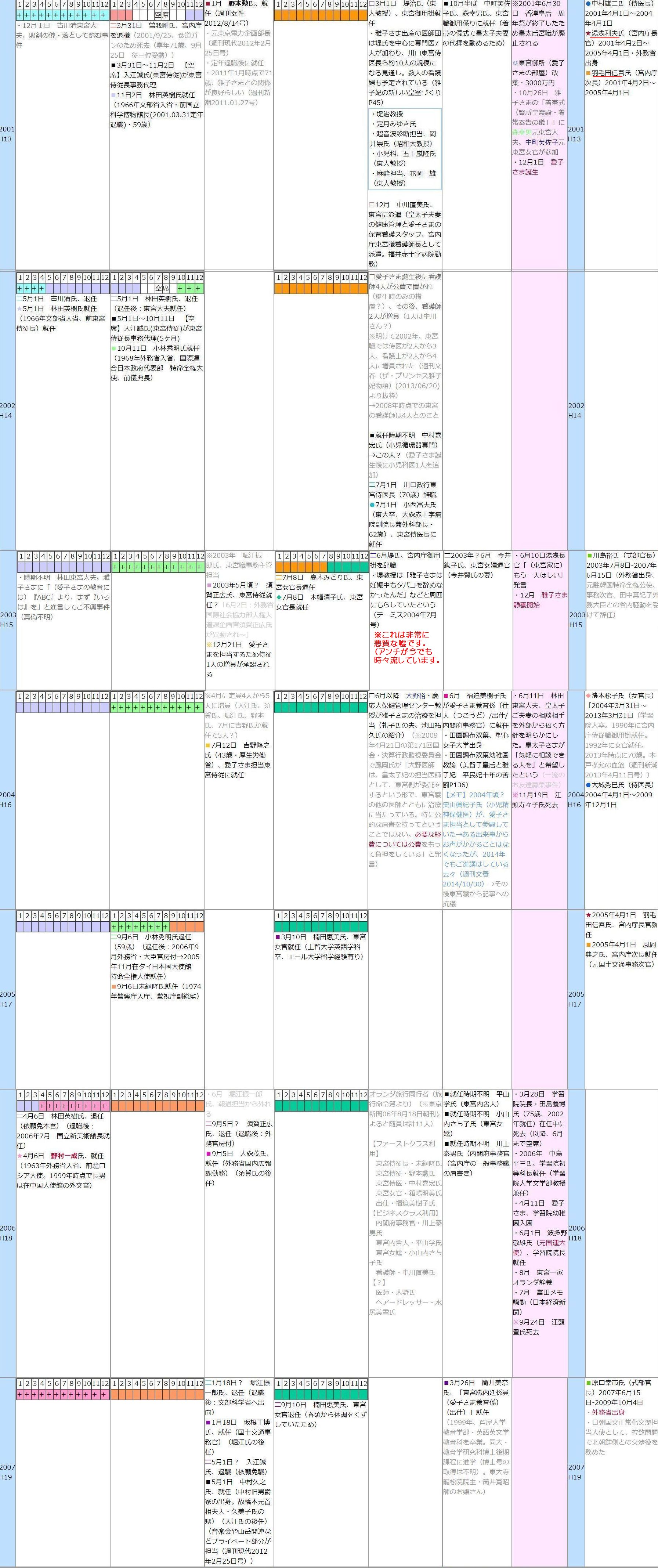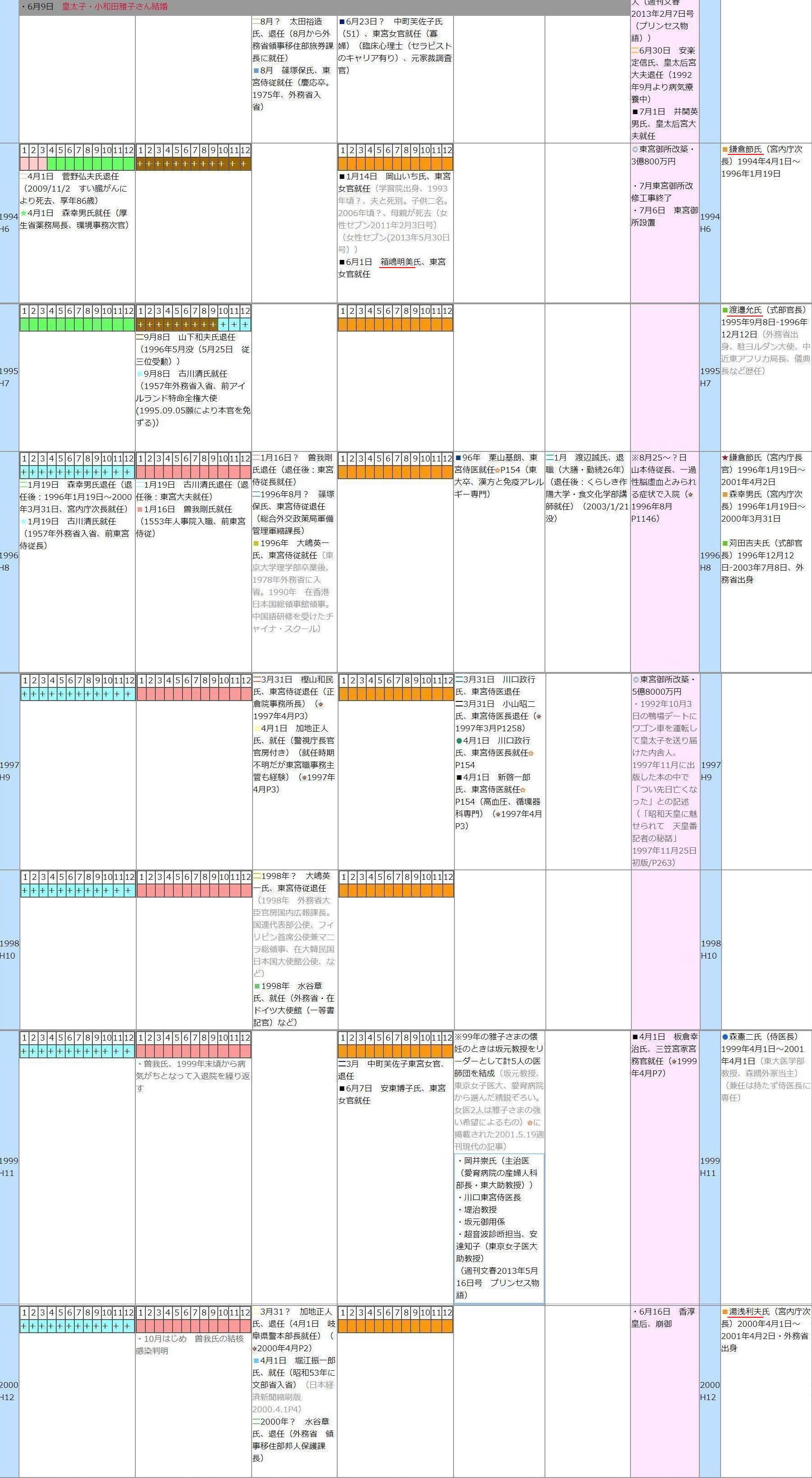 どうも、アンチが作った年表のようなので、あちこちから「雅子憎し」のデムパがビンビン出ていますが、重宝しているので、保存して置いたものですw